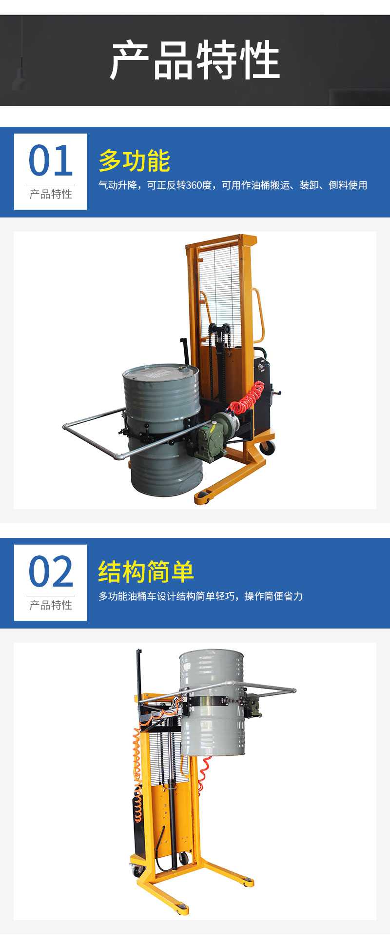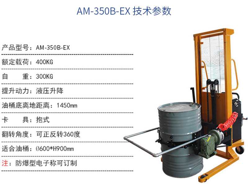 AM-350B-EX防爆氣動油桶車翻轉車油桶升高翻轉倒料車360度翻轉車-無錫阿塞尼科技有限公司