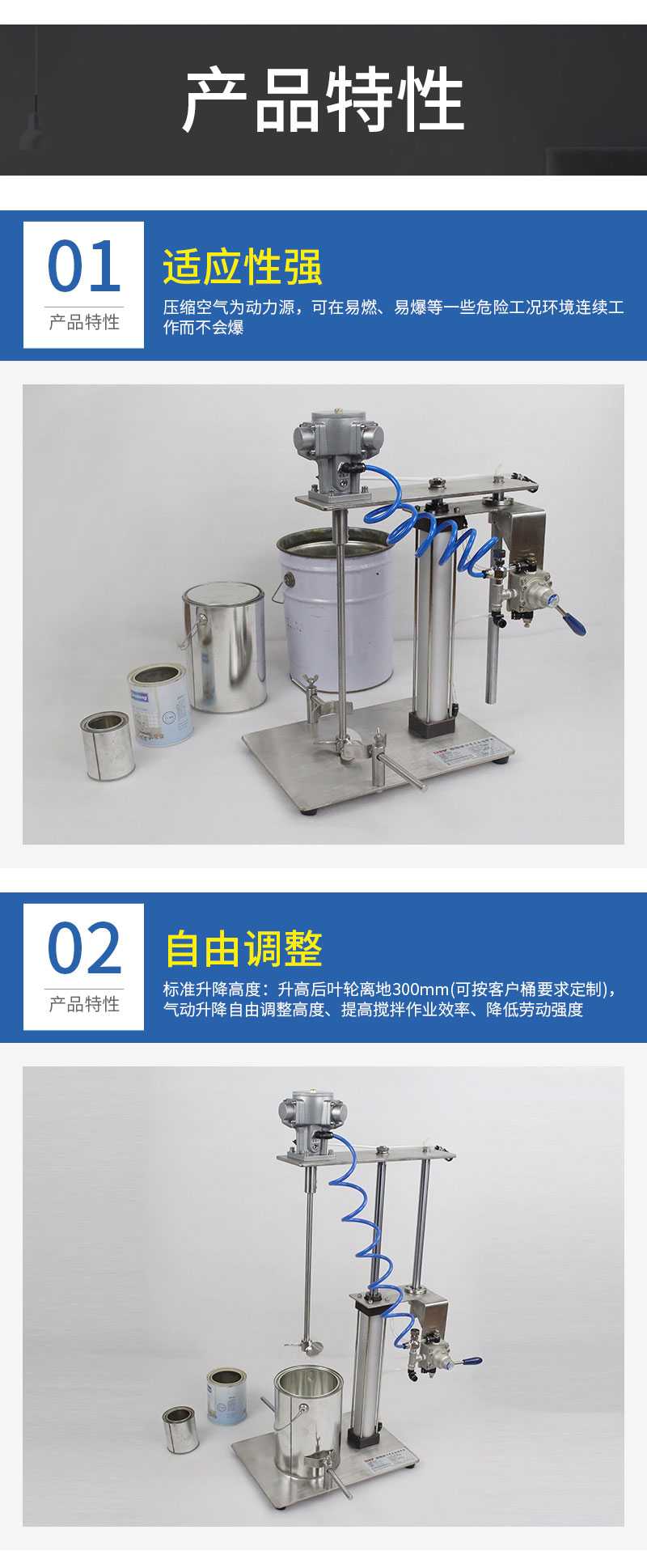 1、使用壓縮空氣為動(dòng)力,防爆,不產(chǎn)生靜電、火花。